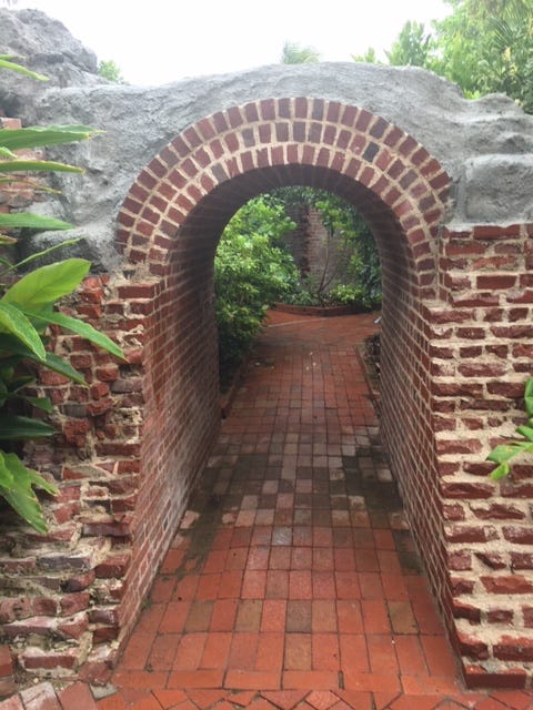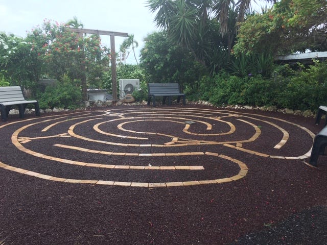 With tangy salt air and light drizzling rain as my companions, I circled the center of a labyrinth at Key West Garden Club at West Martello Tower.